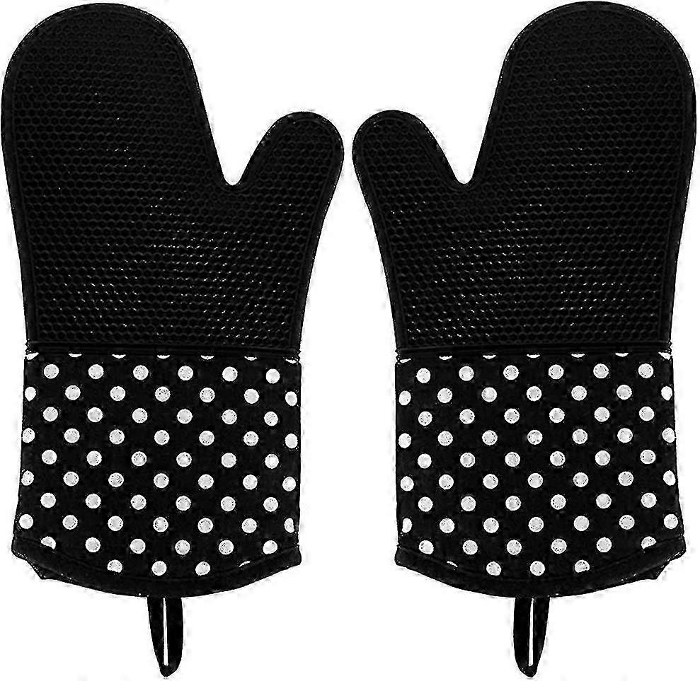 Silicone Oven Mitts -kitchen Oven Gloves For Cooking, Baking, Barbebue Potholder(1pair, Black)