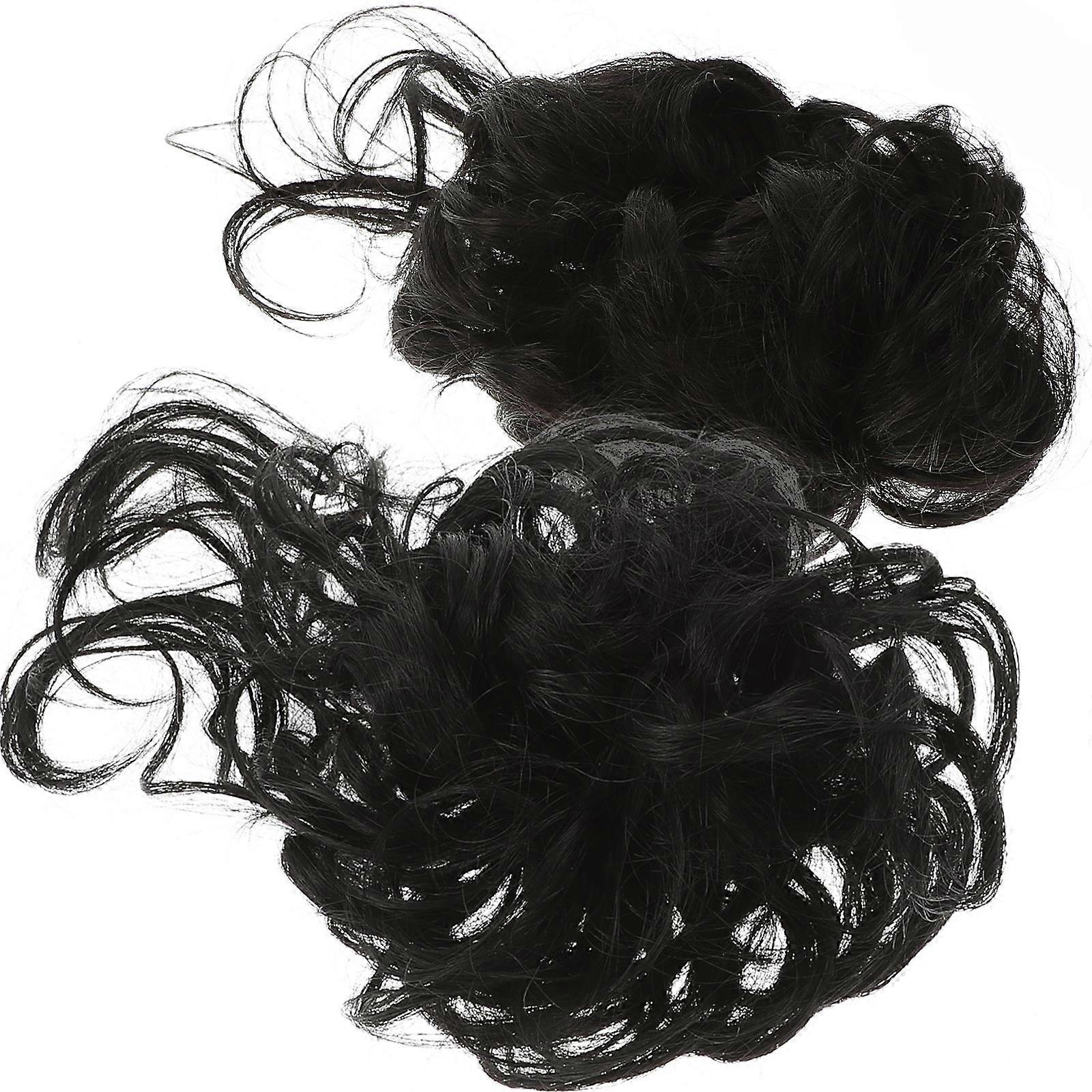Black Messy Bun Hairpiece for Women High Temperature Silk Fake Hair Bun Extension for Halloween 2pcs