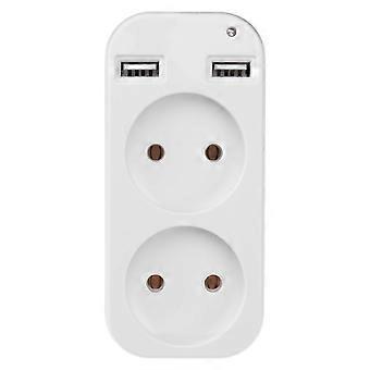 European Power Adapter Plug Double Socket Dual USB Socket Outlet Strip EU Plug
