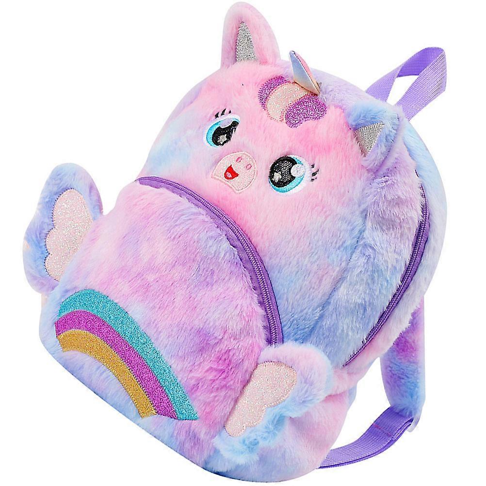 Plush Unicorn Backpack for Storage Use 4Pcs Cartoon Girls School Bag Violet
