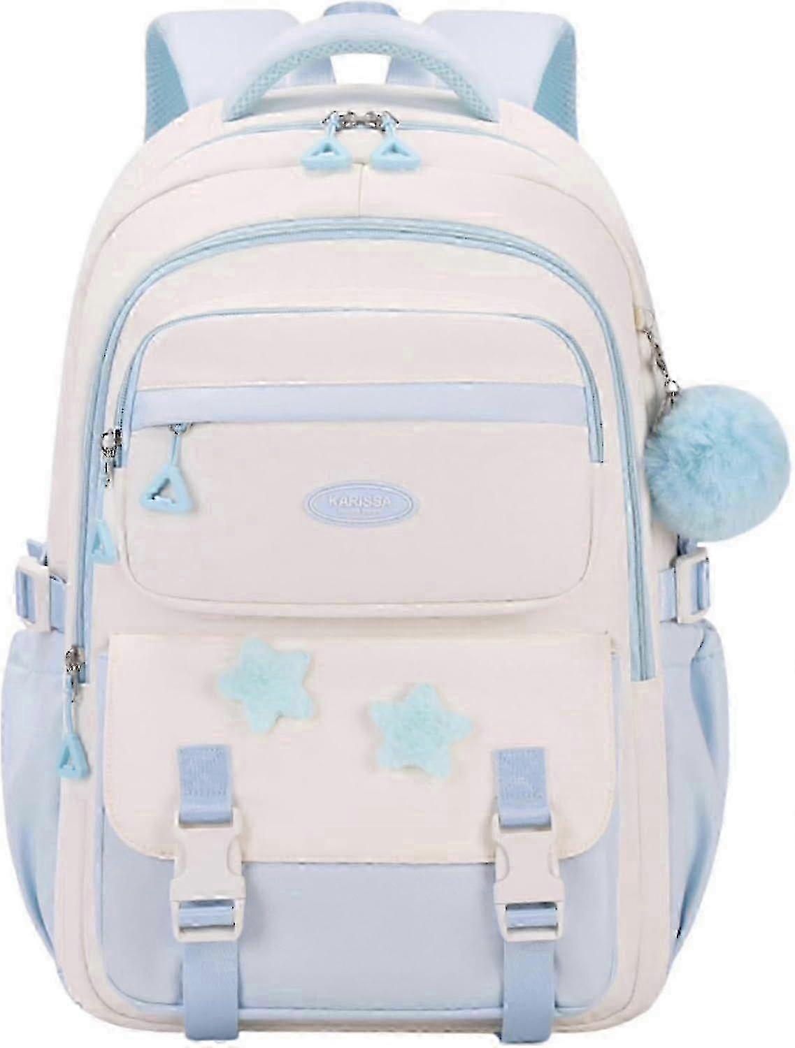 Girls Backpack - Stylish School Bag for Elementary & Middle School, Teen Girl Bookbag with Star Pins & Furry Pendant