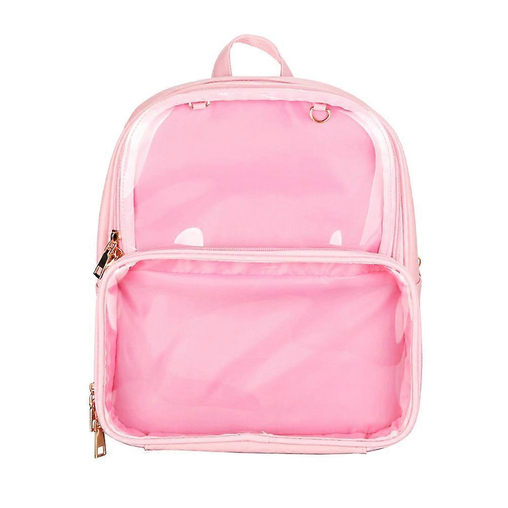 Stylish Transparent Zipper Backpack Large Capacity Makeup Organizer for Teenager Boys Pink 31 X 27 X 10Cm Adjustable Straps 1Pack
