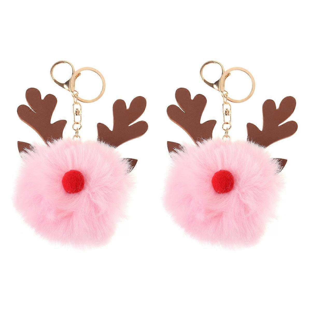 Backpack Keychain Imitation Rabbit Keyring Christmas Elk Shape Pink Bag Decoration 2Pcs