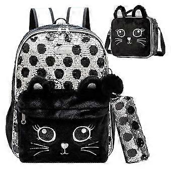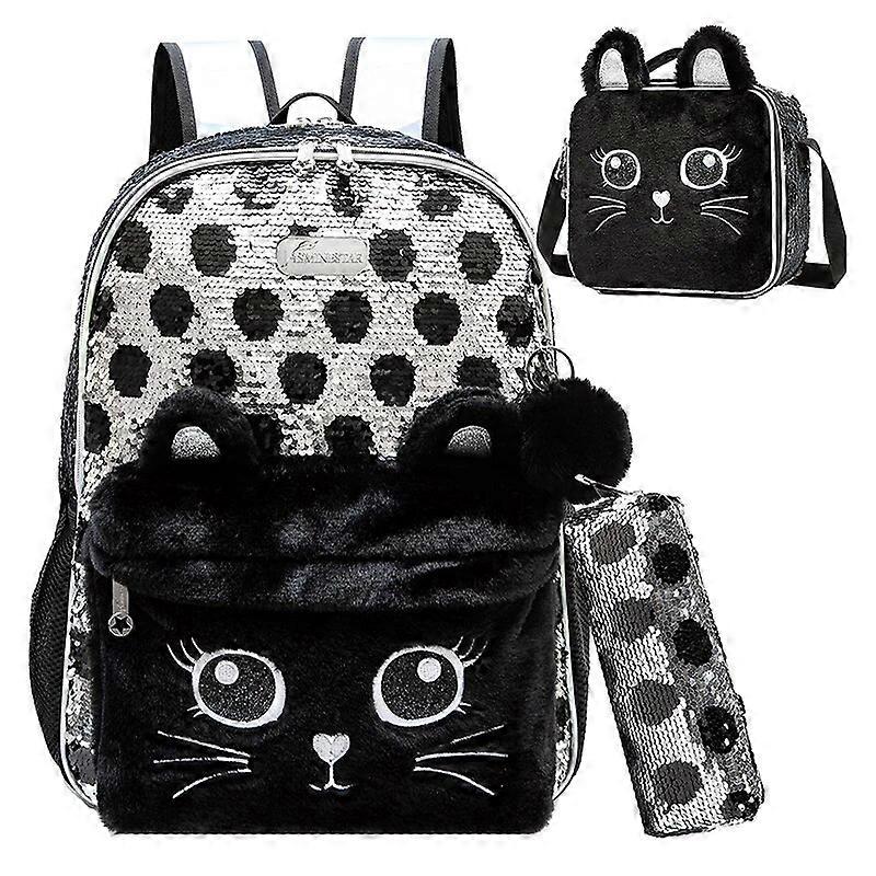 Silver Sequin Backpack for Girls Sparkly Panda Backpacks with Lunch Box for Elementary Preschool Student Cute Bookbag for School