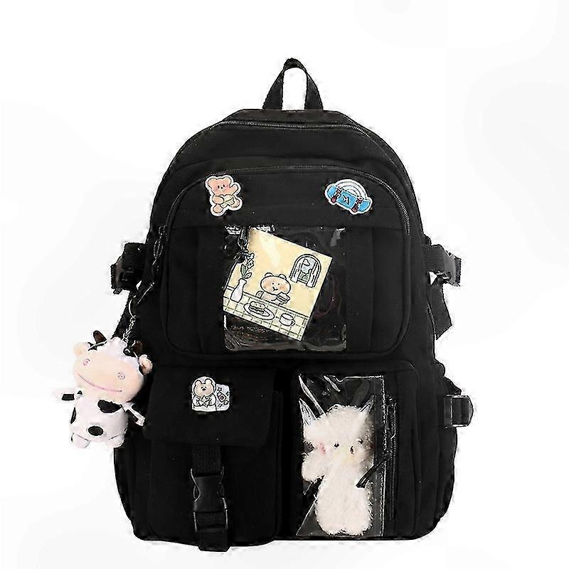 Cute Bear Plush Backpack with Pins - Large School Bag for Girls