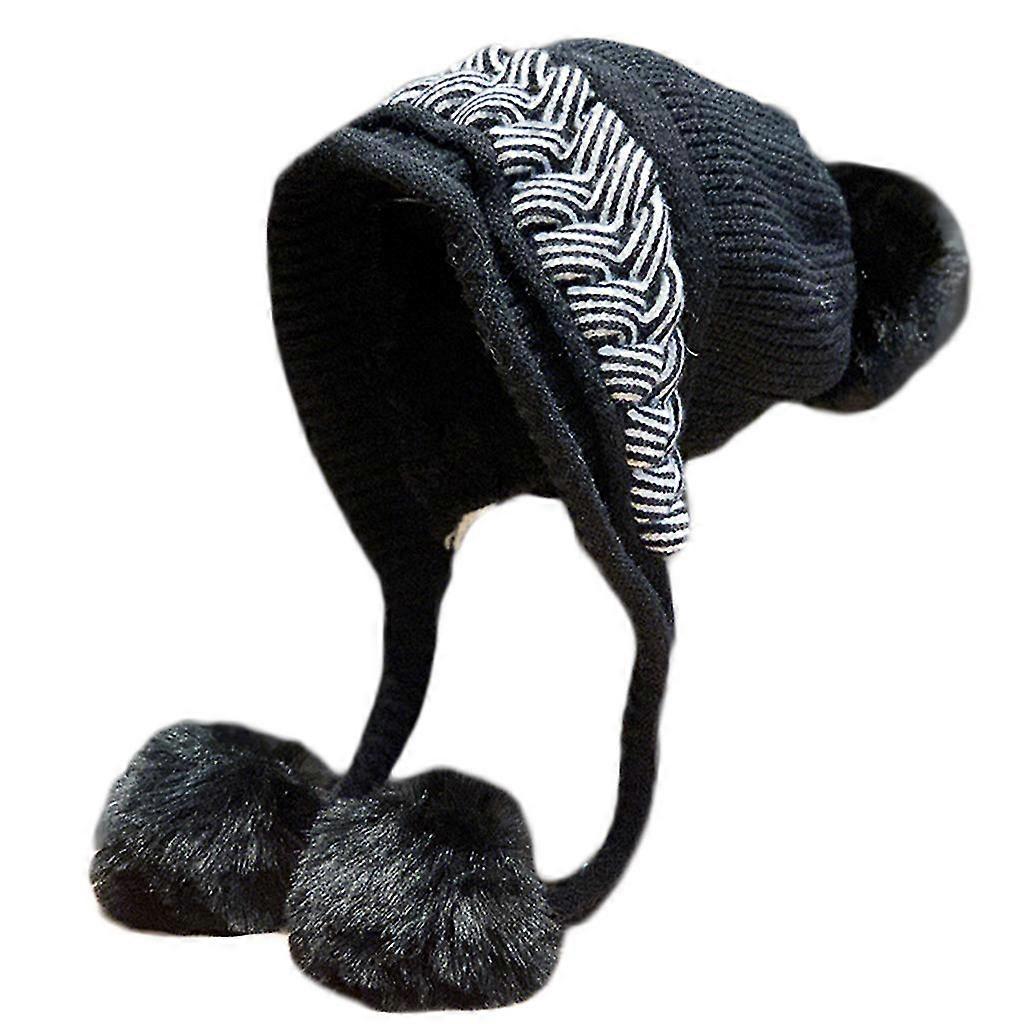 Thermal Woolen Hat Pompoms Knitted Hat Earmuffs All-match Windproof For Winter