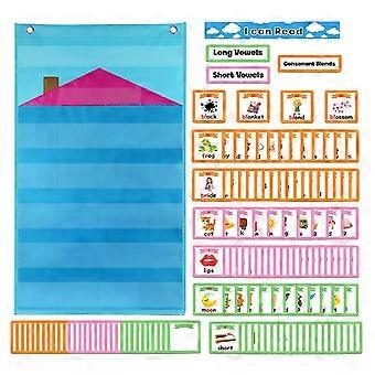 Pocket Chart Blue Long Vowels Learning 154 Cards for Kids Classroom Teaching
