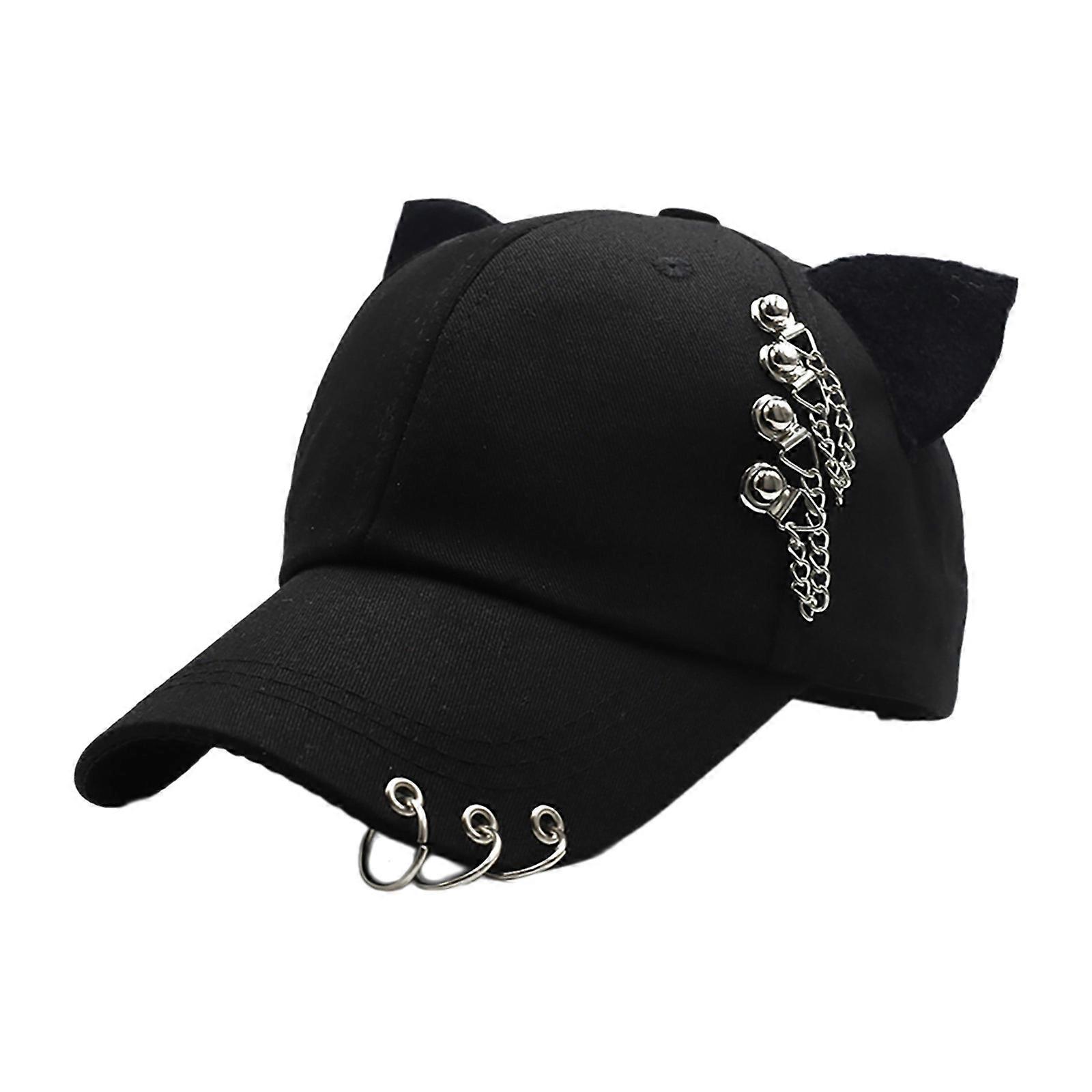 Subculture Casual Sport Hat Metal Charm Baseball Hat Kitten Ears Adjustable Dad Hats for Travel Fitness Workout