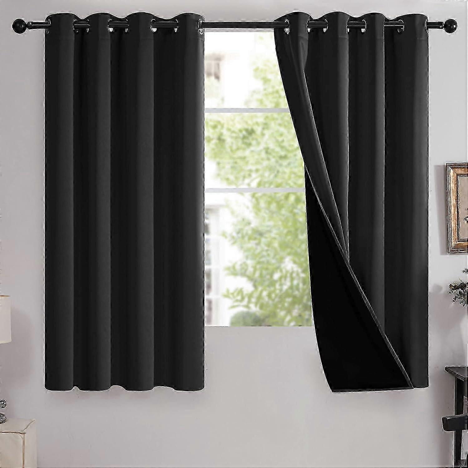 100% Blackout Cordura Black Curtains with Backing, Thermal, Acoustic Curtains for Living (W 52 x L 63 inches, Black)