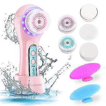 מברשת לניקוי פנים, מקרצף פנים חשמלי 6 ב-1 עם 6 ראשי מברשת ו-3