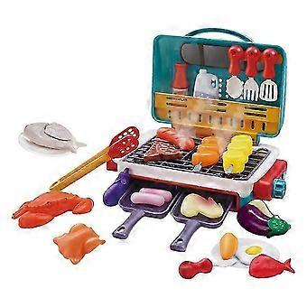 אריחים מגנטיים ורודים מתלה ברביקיו לילדים צעצוע מטבח בישול ריאליסטי ספריי אור צליל צבע שינוי משחק מזון סט