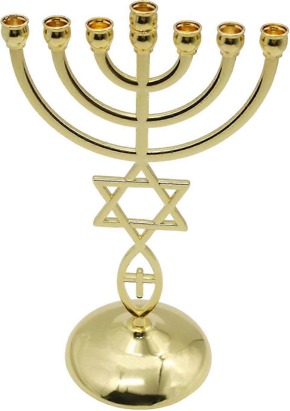 Traditional Candelabra Menorah Candlestick Holder 7 Branch Wide Sturdy Base For Bedroom, Living Room, Party 8.3Inch Tall Ornaments Elegant