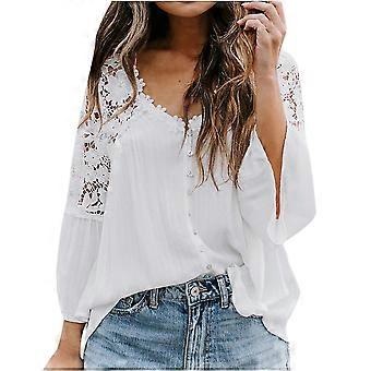 נשים מוצק V-מחשוף תחרה סרוגה עין שלושה רבע חולצות שרוול חולצות