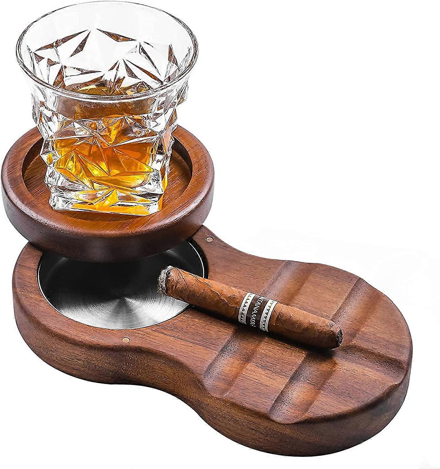 Ashtray, Wooden Cigar Ashtray, Coaster Whiskey Glass Tray and Cigar Holder, Cigar Whiskey Accessory Set for Gift Men Dad, Great Decor for Home, Office
