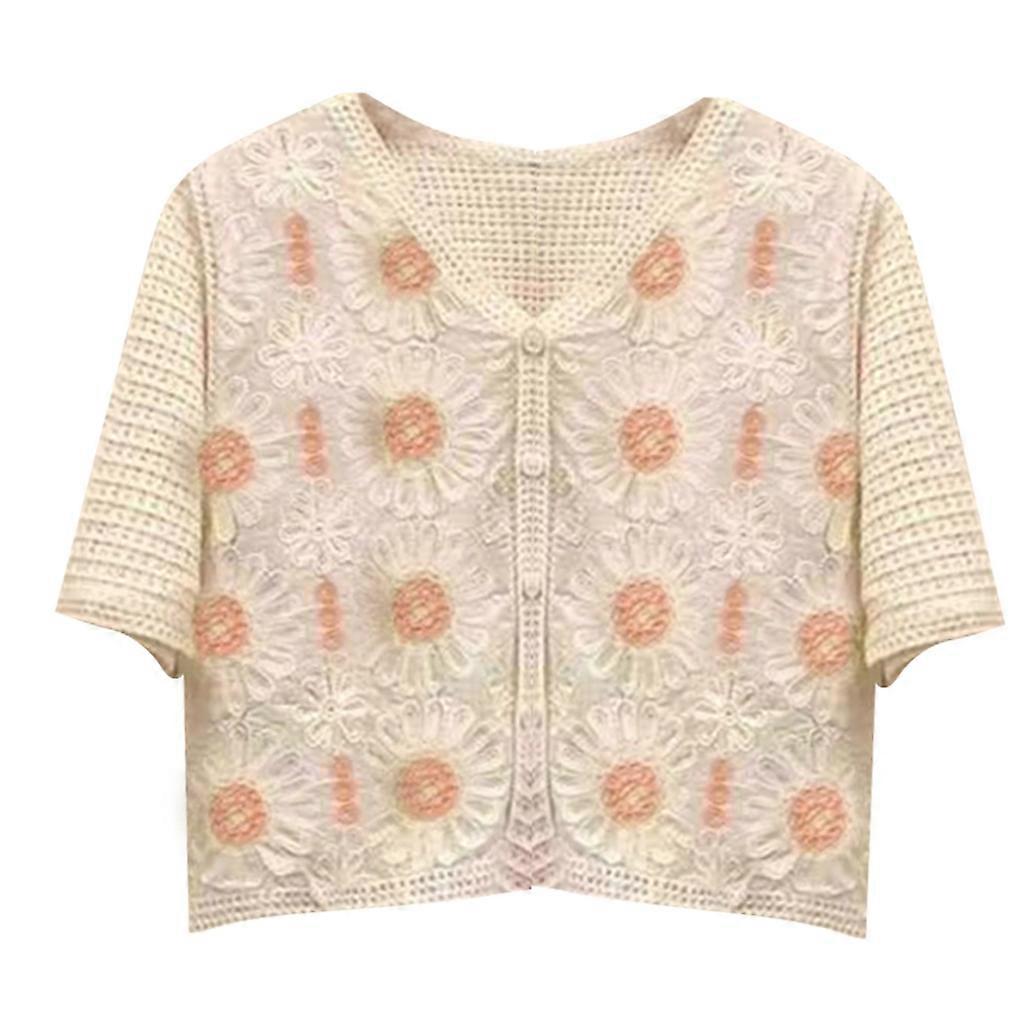 Womens Hollow-Knit T-shirt Tees Hollow-Short Sleeve Crochet Crop Tops Blouses