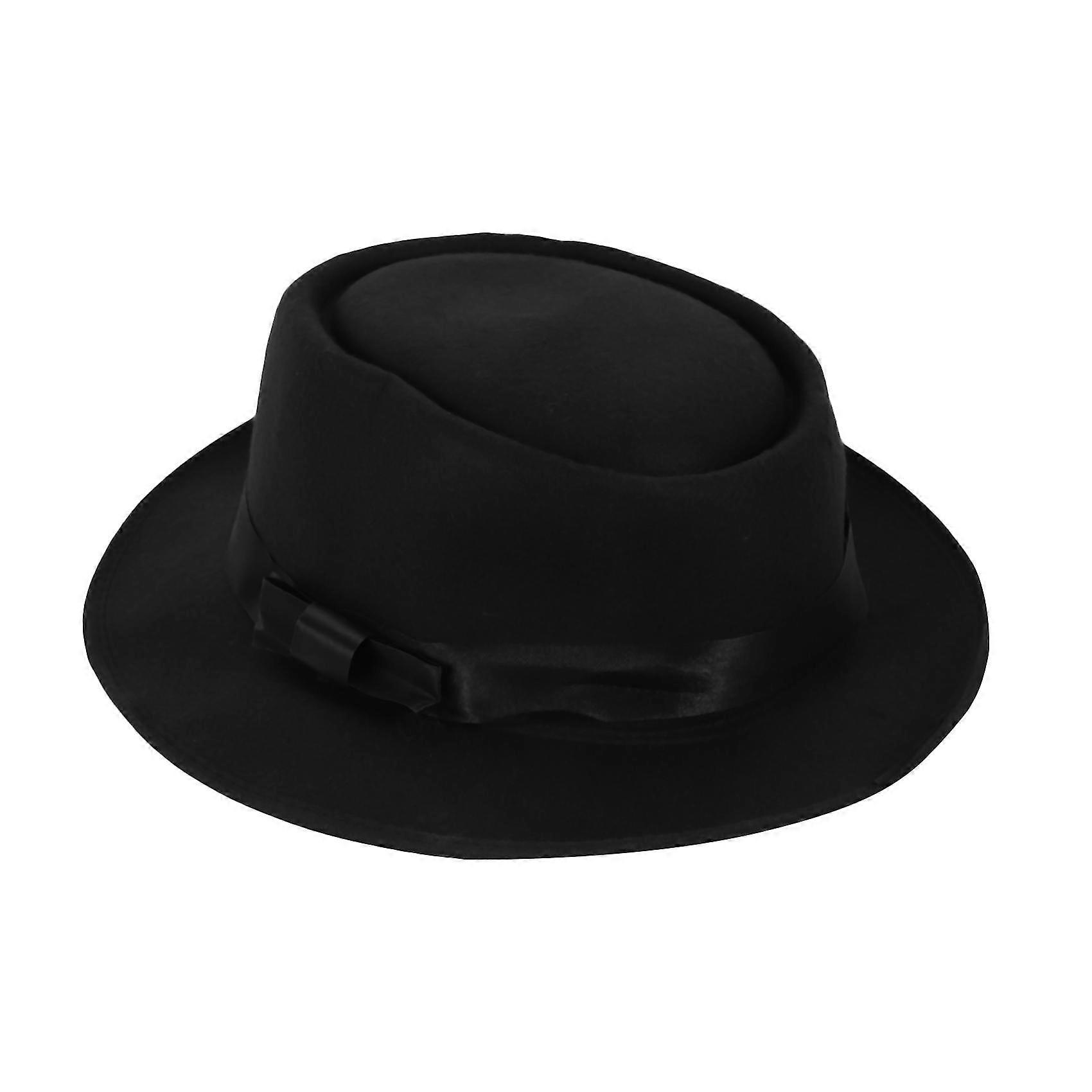 Women Men Classic Jazz Hats Fedora Trilby Hat Blower Hats With Bowknot (black)