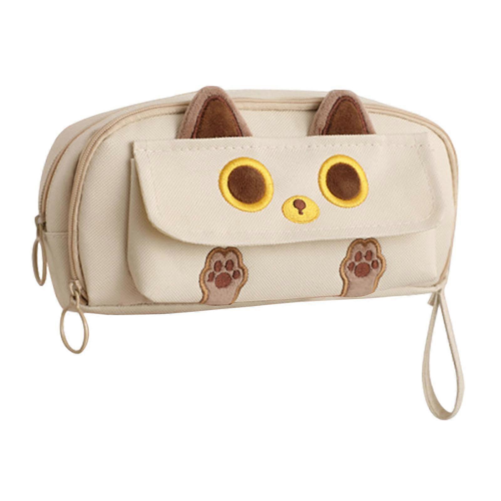 Pencil Case Cat Cosmetic Bag for Boys Girls Children School, Office Supplies Beige