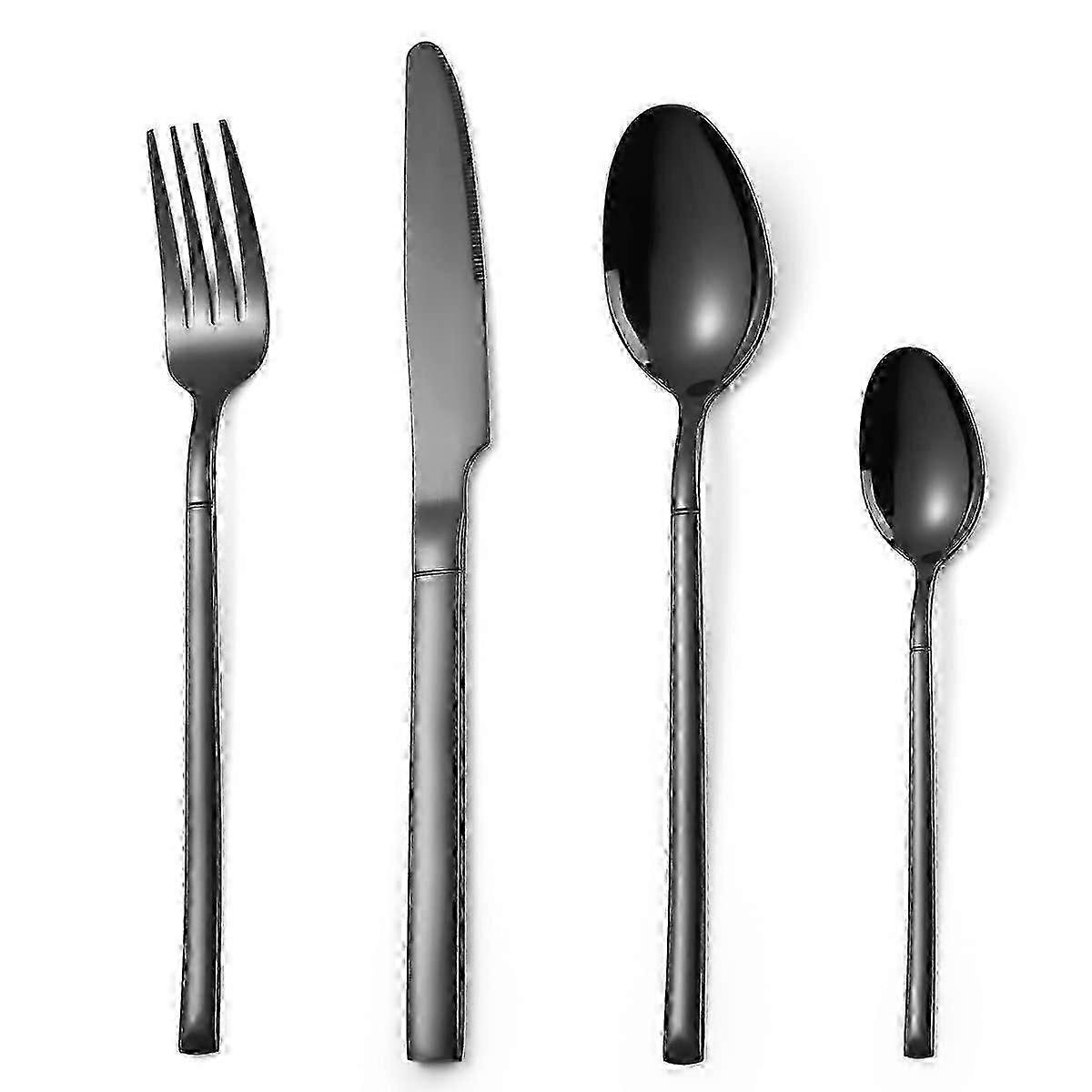 Stainless Steel Silverware Set - Black Flatware Cutlery with Fork Knife Spoon, Dishwasher Safe