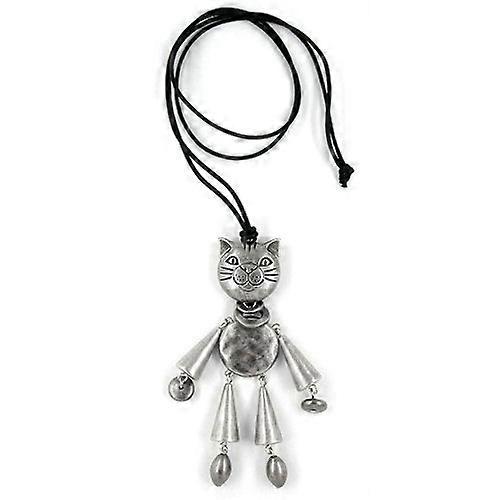 Kette Katze altsilberfarben Kunststoff Kordel schwarz 90cm