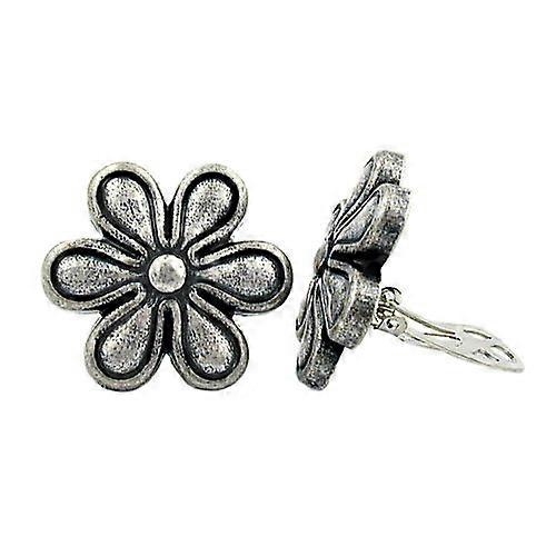Clip Ohrring 30mm Blüte altsilber-farbig Kunststoff-Bouton