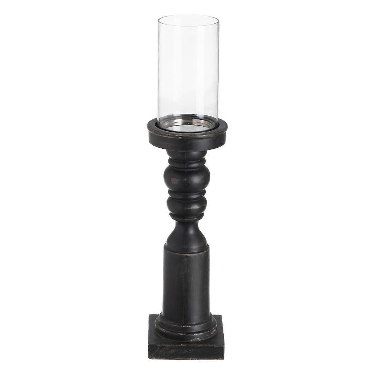 Kerzenschale Schwarz Holz Kristall 12 x 12 x 55 cm