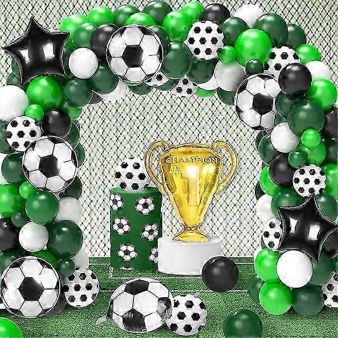 Soccer Party Decorations, 113Pcs Soccer Party Balloon Garland Arch Kit Green White Black Balloons with Soccer Foil Balloons for Sports Soccer Theme Bi