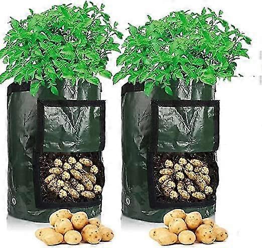 The 2 pack grow bag is made of breathable polythene, the polythene pot allows the roots to breathe and grow healthier, increase plant growth and yields. Strong stitching, two side carry handles for easy moving, with grommet drain holes. Don't worry about free space, no sun, snow or any terrible weather 2 Pack, Diameter: 35cm, height: 45cm, capacity: 70L, 4-6 Potato Plants in Each Bag Clever Design: The potato grow bag designed a window that can be opened and closed, through which you can not only check if your plant is mature and you can easily harvest the plants through the window. Ease Plant Growth and Vegetable Harvesting Durable & Reusable: High quality and sturdy material reusable for use time after time and season after season. Lightweight, waterproof and easy to hang with handles, can be used anywhere on stairs, balcony, roof, corner or on your wall. Eco-Friendly: The grow bag can be used to plant potatoes, taro, radishes, carrots, onions and many other vegetables. Widely used in vegetable plants, greenhouses, flower plantations, indoor gardens, farms, potted plants, outdoor nurseries, etc. Note: The data are all manual measurement, please understand. please allow 1 - 3cm error, due to the light and display difference, there will be some color difference, depending on the physical object received.