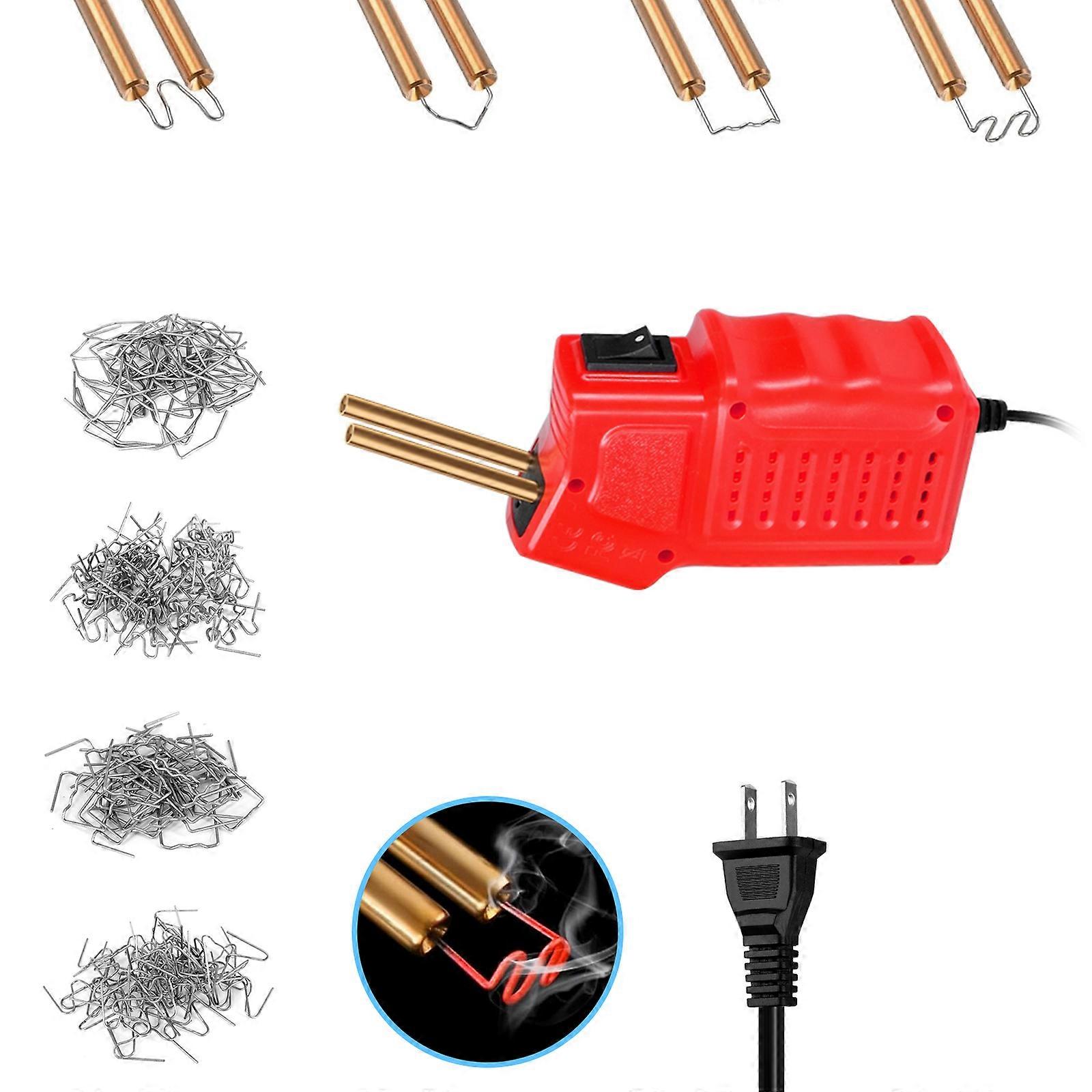 Plastic Welder, Plastic Welding Kit with 200PCS Hot Staples, Mini Handheld Welding Machine for Car Bumper Plastic Crack Repair (Red, US Plug)