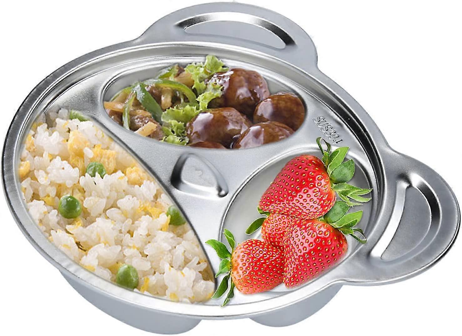 Stainless Steel Divided Plate, 3 Sections Dinner Plate Mess Food Trays PandaShaped Kids Baby Plate--