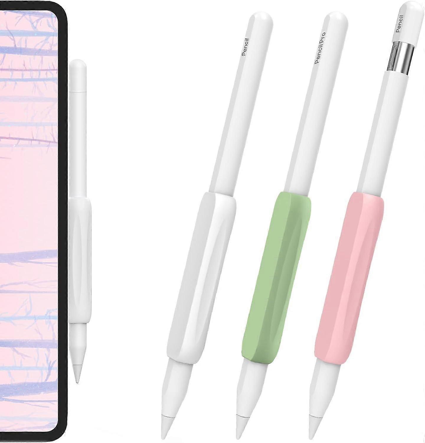(White+Pink+Green)3 Pack Silicone Grips for Apple Pencil Pro Holders Ergonomic Design Grip Protective Sleeve Compatible