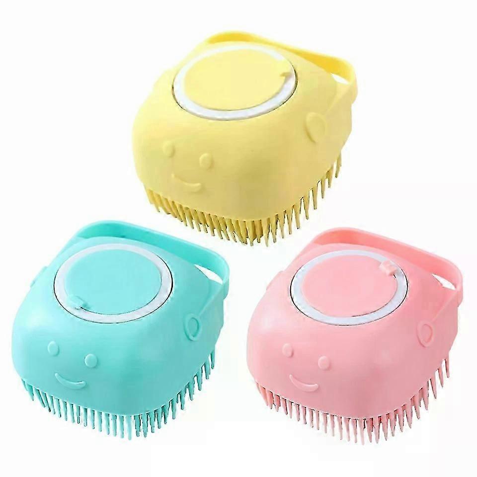 Pet Massage Bath Brush, 3 Pcs Silicone Scrubber with Shampoo Dispenser for Dogs Cats Wash