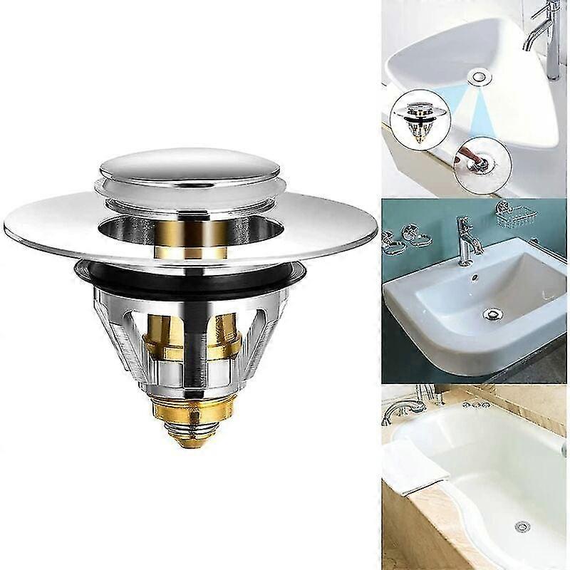 Popup Sink Drain Universal Antiblocked Drain Filter, Sink Stopper, Bathtub Drain And Valve [stainless Steel+pure Copper, For 3438mm Drain Hole] B