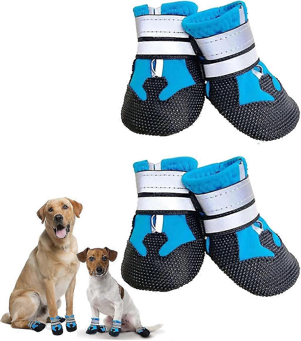 Dog Boots, Set Of 4 Non-slip Dog Shoes, Waterproof Dog Protective Boots For Small Medium Large Dogs (l, Blue)