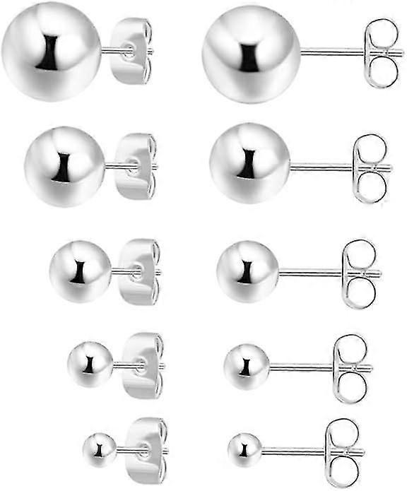 Sterling Silver Stud Earrings for Women, Earrings Tiny Stud Earrings for Multiple Piercings 5 Pairs