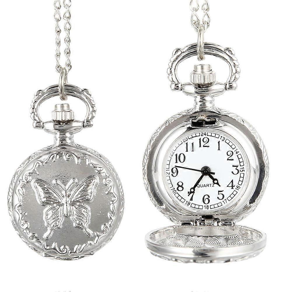 Fashion Vintage Quartz Pocket Watch Alloy Flowers Butterfly Women Lady Girls Necklace Pendant Sweater Chain Clock Gifts EIG88
