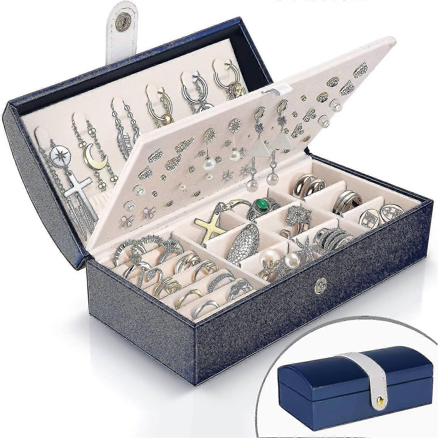 Travel Jewelry Box For Women, Two-layer Jewelry Display Case Pu Leather Jewelry Organizer For Necklace Earring Rings