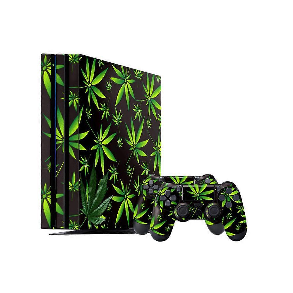 Green Leaf Console+Controller Stickers Set Decal Cover Skin Compatible Sony PS4 Pro