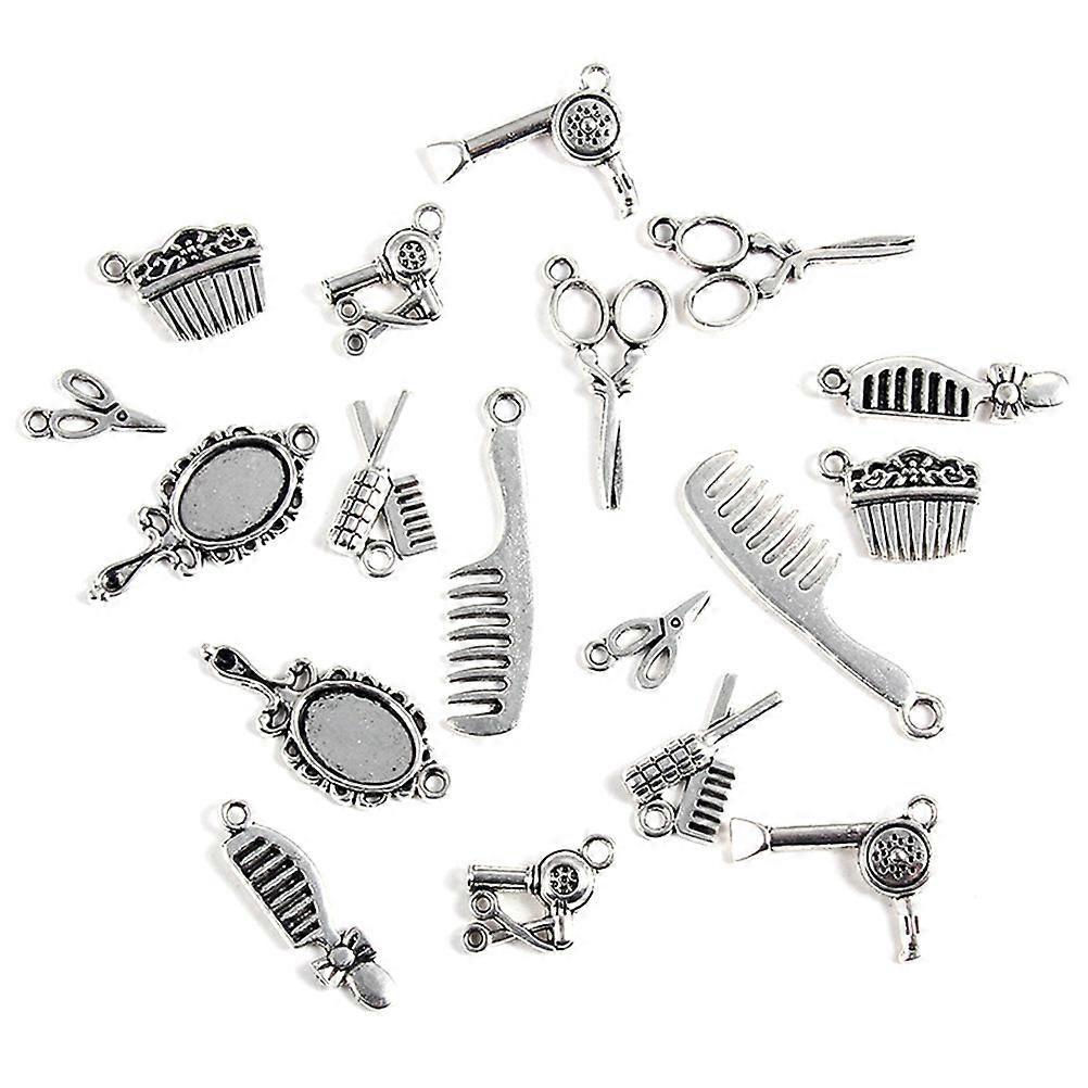 This item is a set of pendants, which are made from material. It is a great set for DIY your necklace, bracelet, earrings. Creative shape design will add some embellishments and make your jewelry special and outstanding among the crowd. You can also make a special gift with these pendants for your friends and family. Features - Color: Silver. - Material: Alloy. - Size: About 3 x 1.4 x 0.2 cm. - Made of material, fine workmanship and durable. - Vintage mirror, comb and scissors shape design, chic and . - Perfect for necklace, bracelet, dangle, keychain, sweater chain, anklet, cellphone decorative accessories, etc. - Great DIY accessories for your friends, lovers or yourself to create a unique eye-catching DIY charms or cosplay style costume. - 2 bags of 40pcs DIY pendant will meet your daily use. Package list: 2 x bag of 40pcs pendant