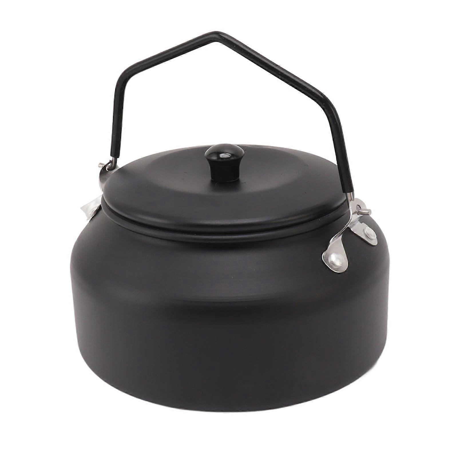 0.9L Matte Black Camping Kettle Aluminum Alloy 15x15x16cm Portable