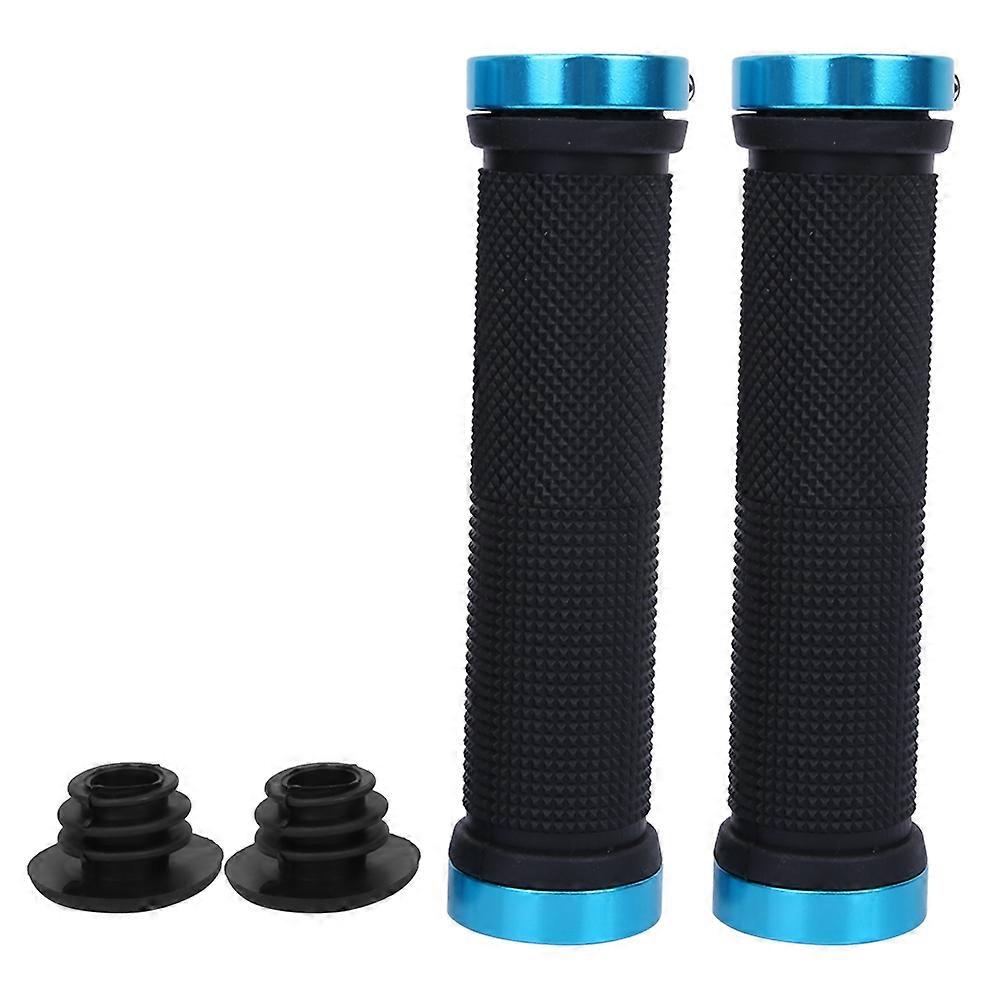 1Pair Anti-slip Rubber Road Mountain Bike Bicycle Handlebar Lock-on Grips Set(Round-Blue)