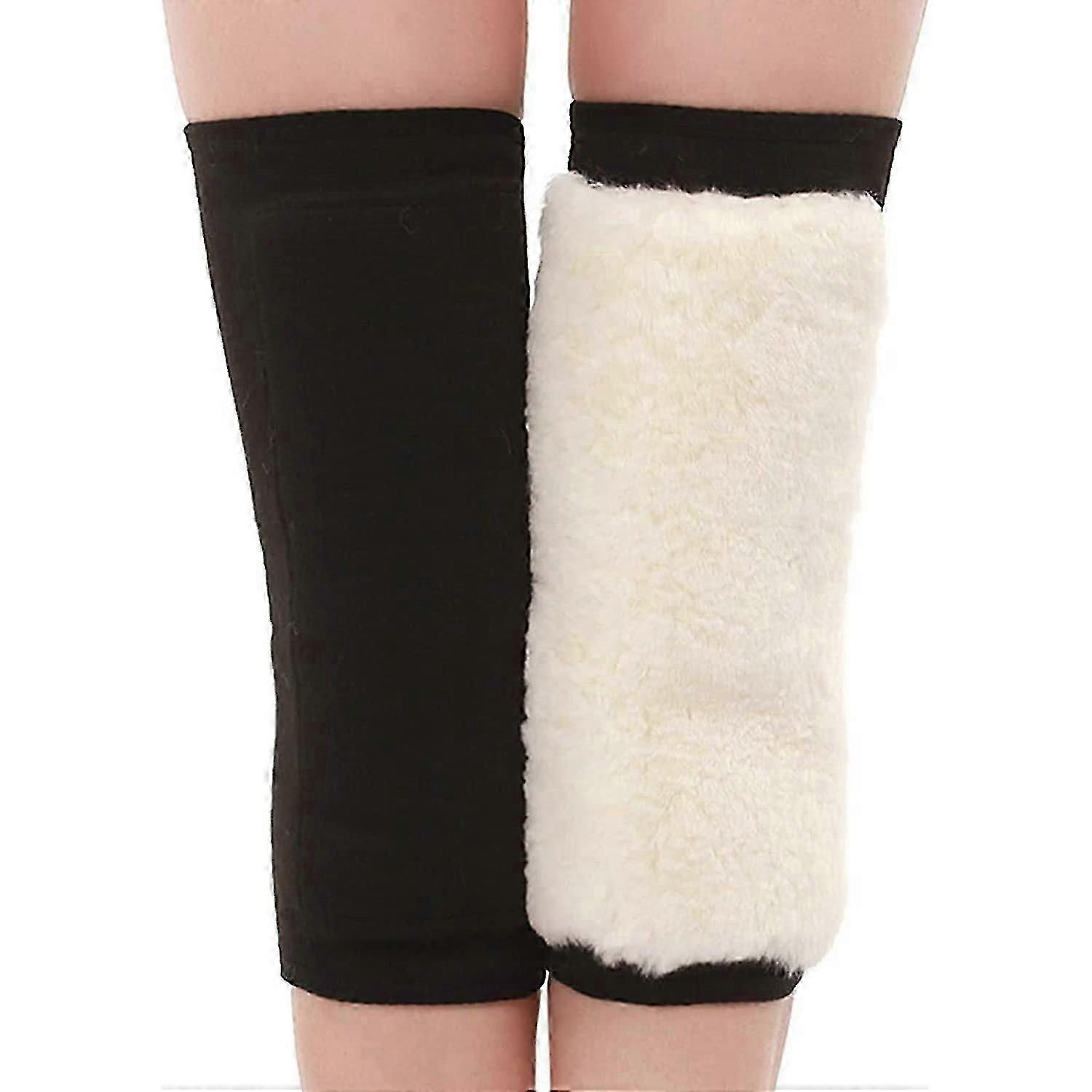 1Pair Winter Thermal Thicken Cashmere Knee Braces Warmer Fur Wool Kneepads Leg Warmer Sleeves Windproof Ski Cycling Knee Support Wraps L