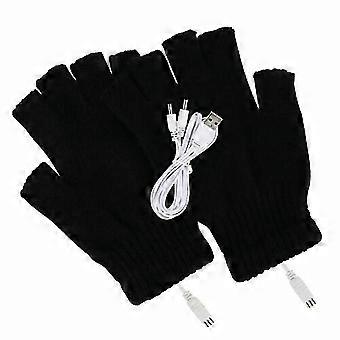 1pair Electric Gloves Winter Thermal Usb Heated Half Finger Mittens Rechargeable Hand Warmers Tw