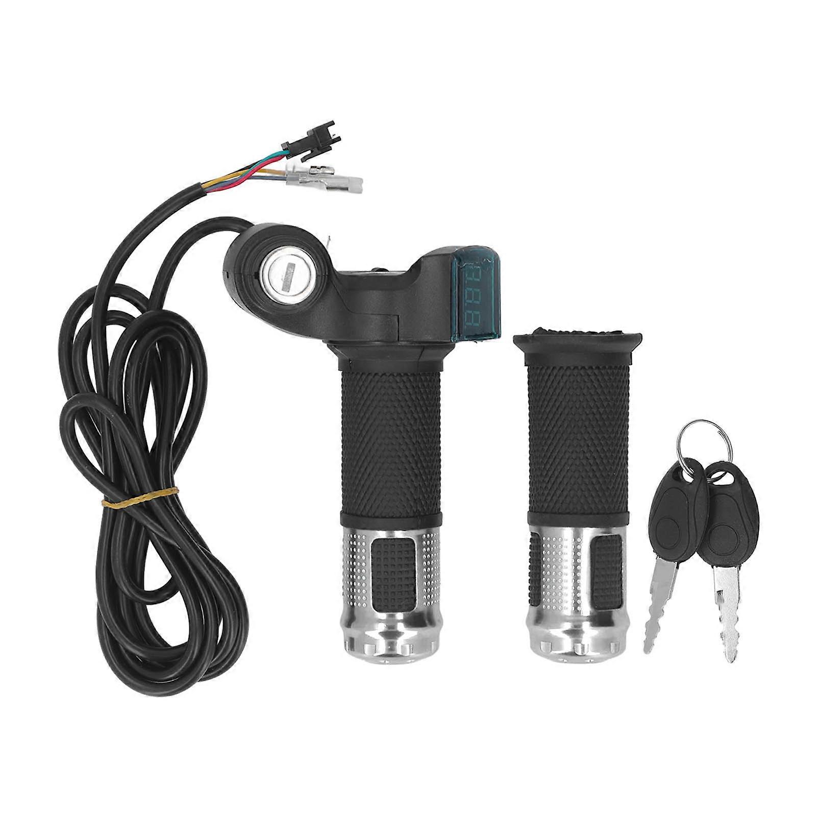 1Pair 10 Inch Electric Scooter Throttle Grip Handlebar Twist Throttle Grip with LCD Display Power Key Locker for Electric Bike Bicycle Silver