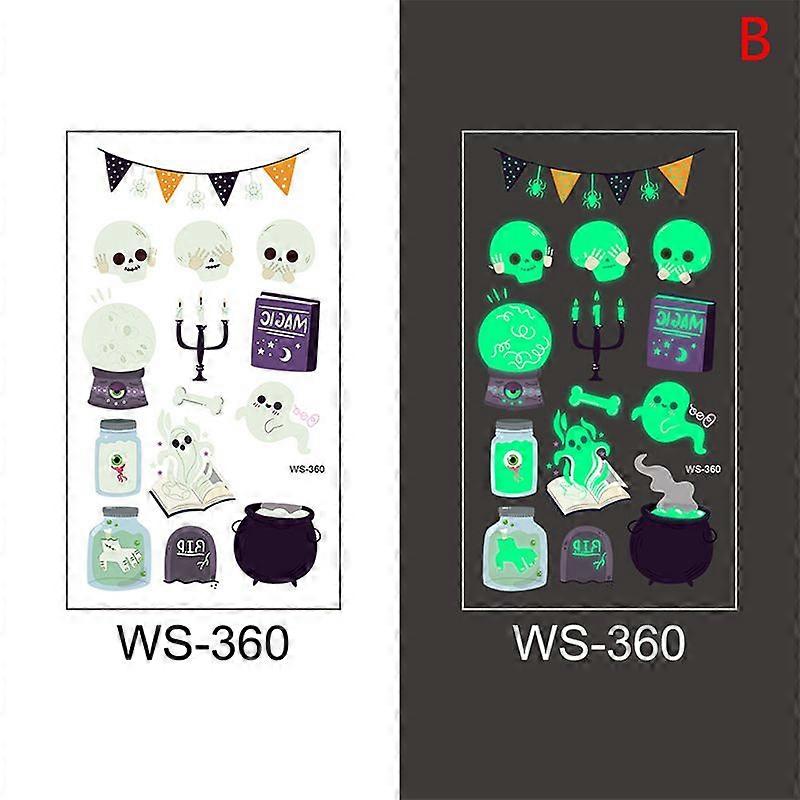 1 Sheet Halloween Tattoo Stickers Waterproof Sweat Fluorescent Disposable Tattoo Stickers Children Cartoon Face Tattoo Stickers