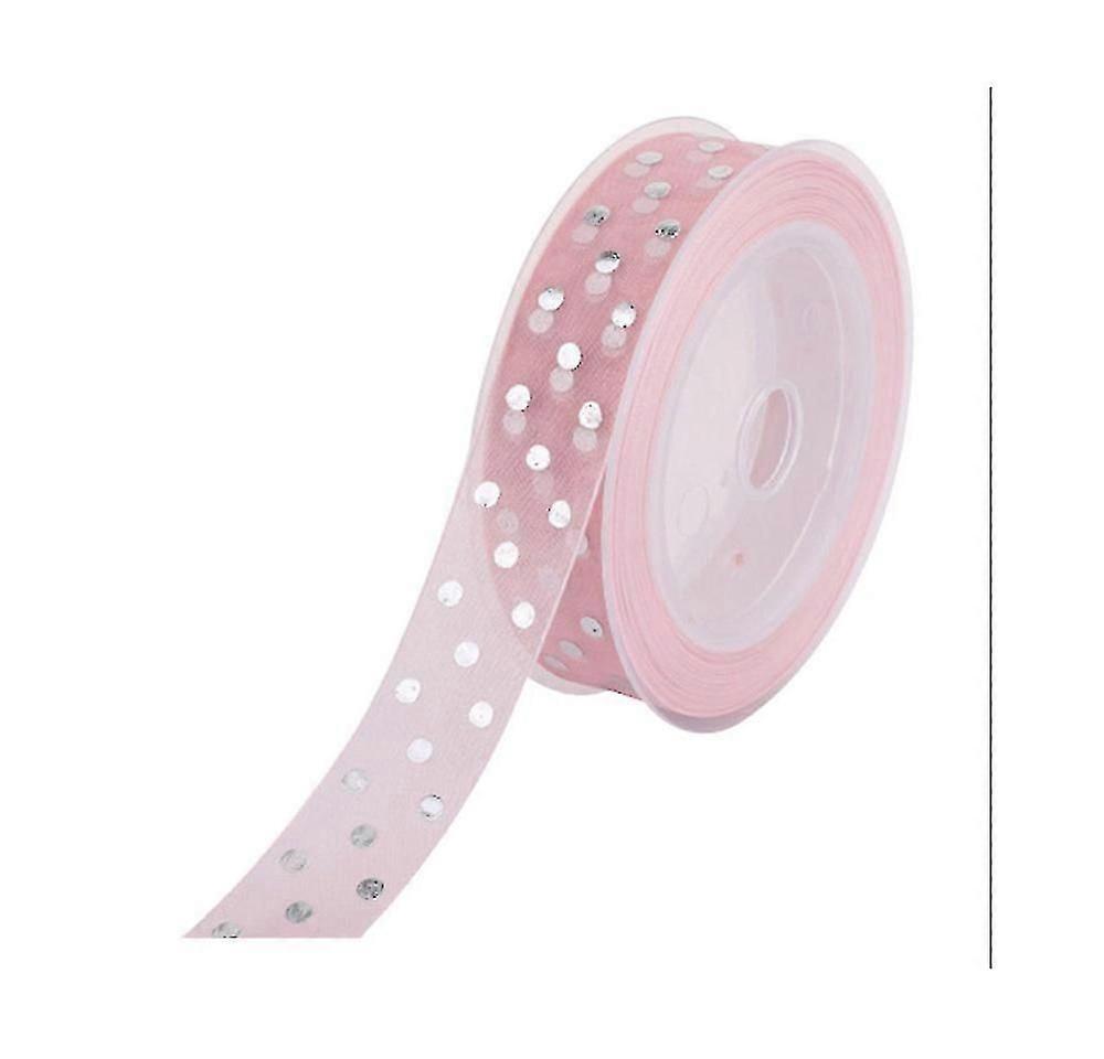 1 Roll Of 20m Hot Stamping Dotted Gift Packaging Ribbon Diy Glitter Pink