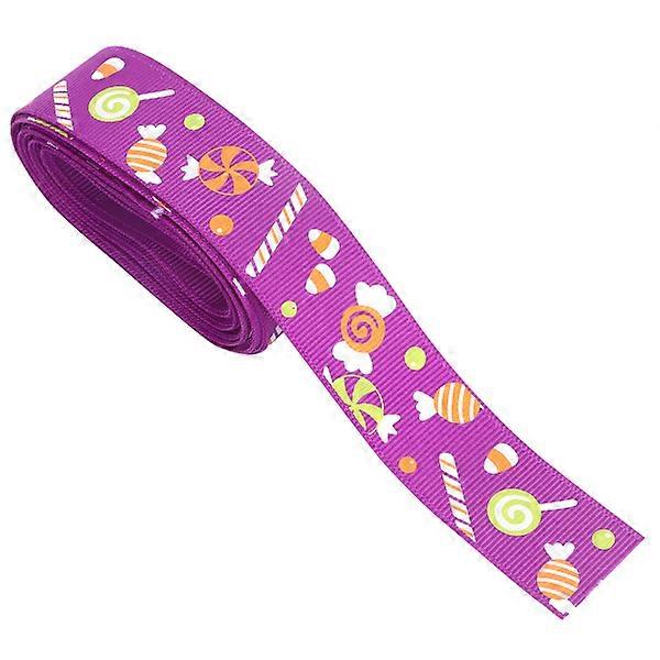 1 Roll 25MM Candy Pattern Hallowen Gift Wrapping Ribbons Printing Packing Ribbons DIY Bow-tie Material (Purple)