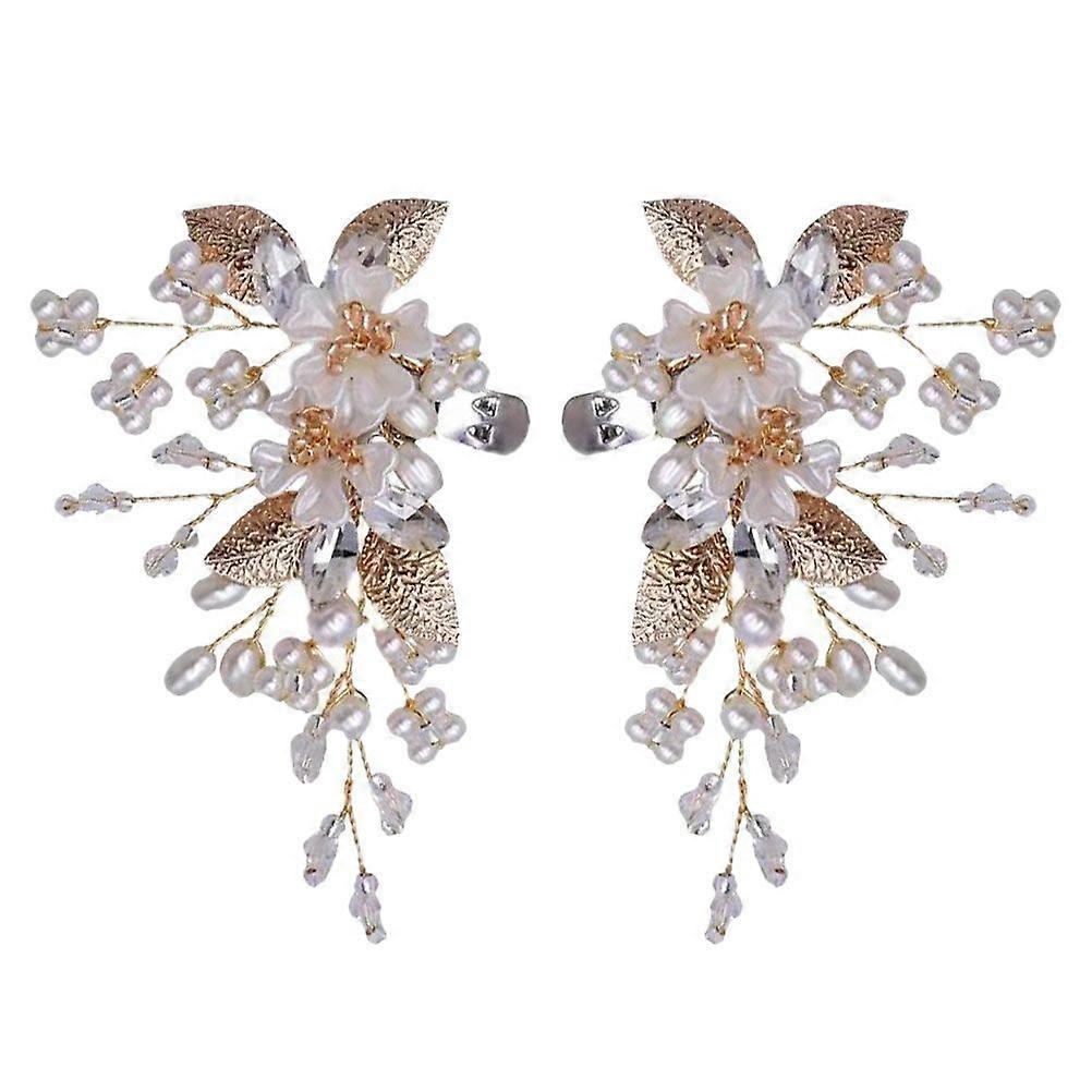 1Pair Elegant Bridal Shoe Buckles Detachable Shoe Clips Pearl Flower Shoe Buckles