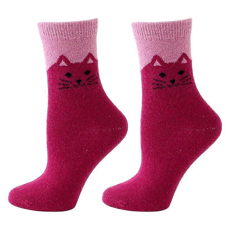1 Pair Winter Socks Wind-proof Soft Touch Adorable Mid Cuff Cat Print Lady Socks for Daily Wear