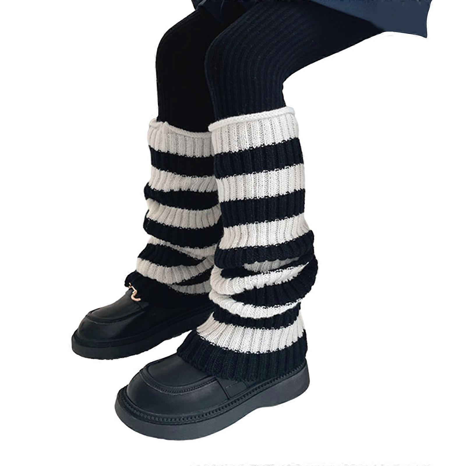 1 Pair Kids Striped Leg Warmers Warm Knitting Knee High Socks Stylish Socks Sleeve Winter Essential Clothing Accessories White