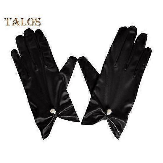 1 Pair Bride Wedding Gloves Pleated Smooth Satin Anti-slip Faux Pearl Decor Elastic Pure Color Dance Ball Banquet Cocktail Party Lady Gloves